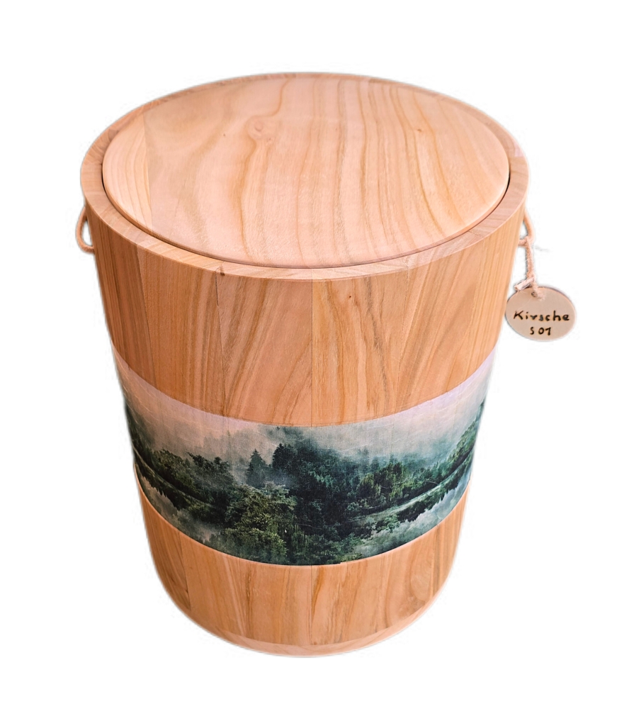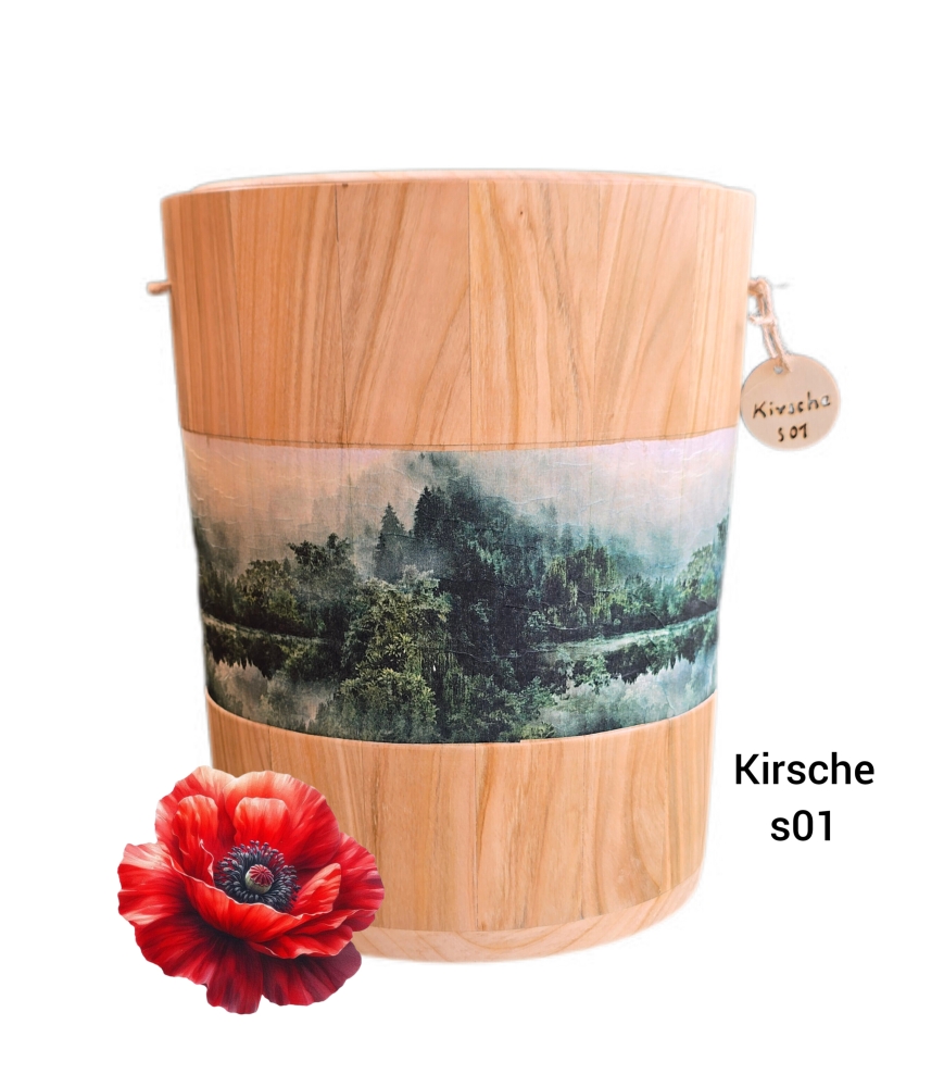 Echtholz Urne aus Kirschenholz Natur- Massiv mit Motiv