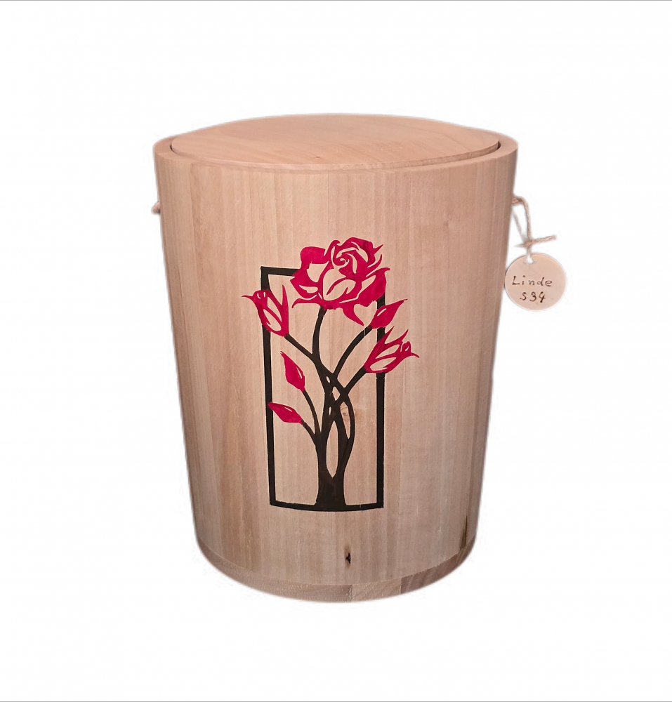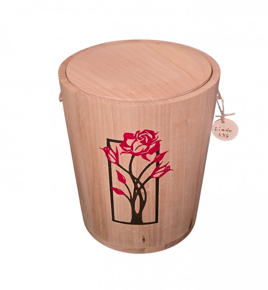 Echtholz Urne aus Lindenholz Natur- Massiv mit Motiv Handbemalt