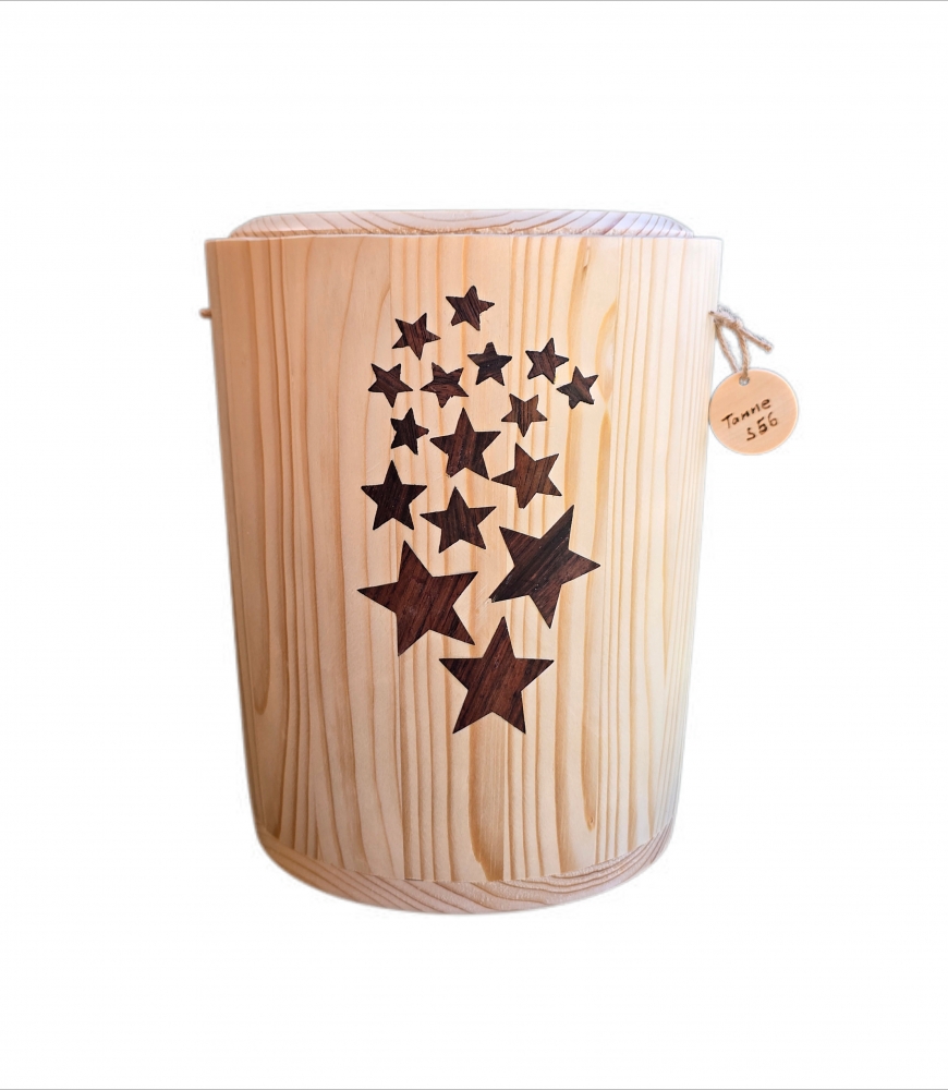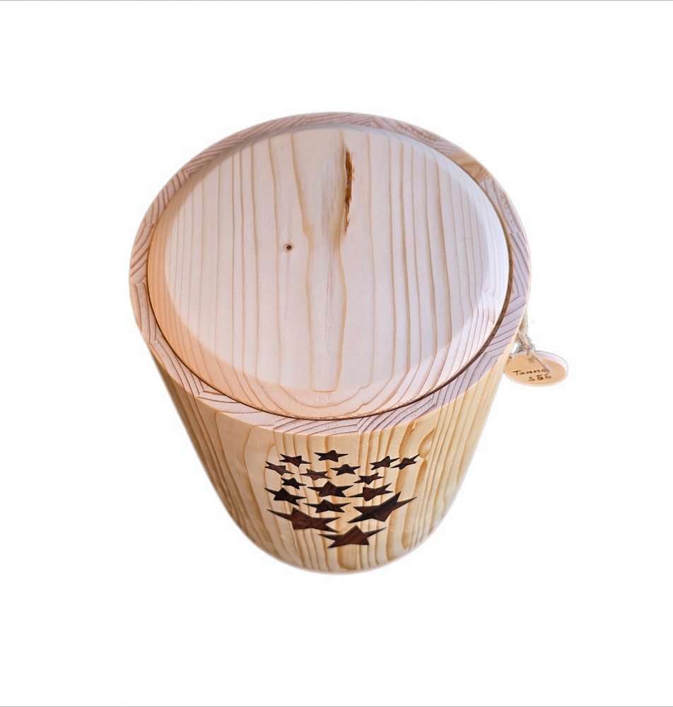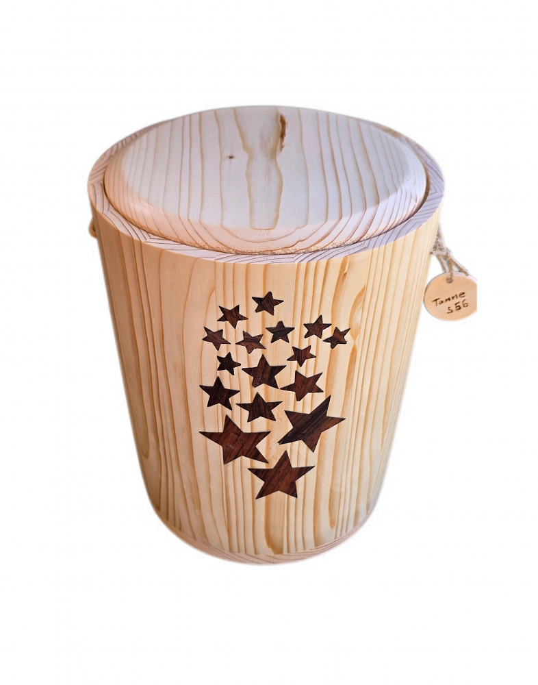 Echtholz Urne aus Tannenholz Natur- Massiv mit Motiv aus Holz